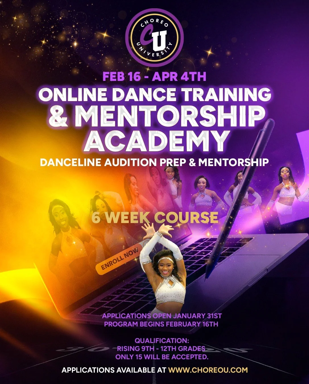 Choreo University is open to high school dancers who are ready to show up, work, and grow. To apply, dancers must meet the following qualifications: